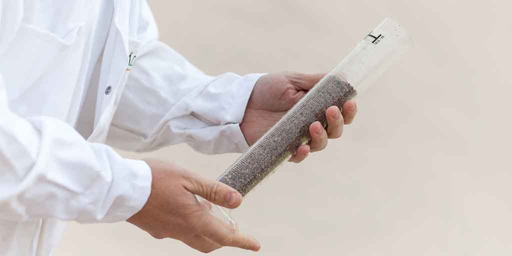 Sanden har snäva fraktionskurvor som ger högsta möjliga verkningsgrad. En unik blandning av fältspat och kvarts gör att halten av SiO2 (kiseldioxid) är ca 80 procent. Kvarts har en hög smältpunkt (sintringstemperatur) på ca 1 200 °C och stor expansion vid upphettning, medan fältspat har lägre smältpunkt och lägre expansion.